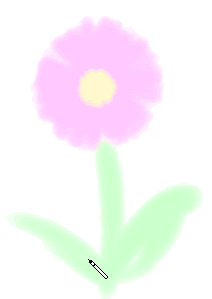 花の部分をp2ブラシで描きました。茎と葉もp2ブラシです(ブラシサイズを下げた)。